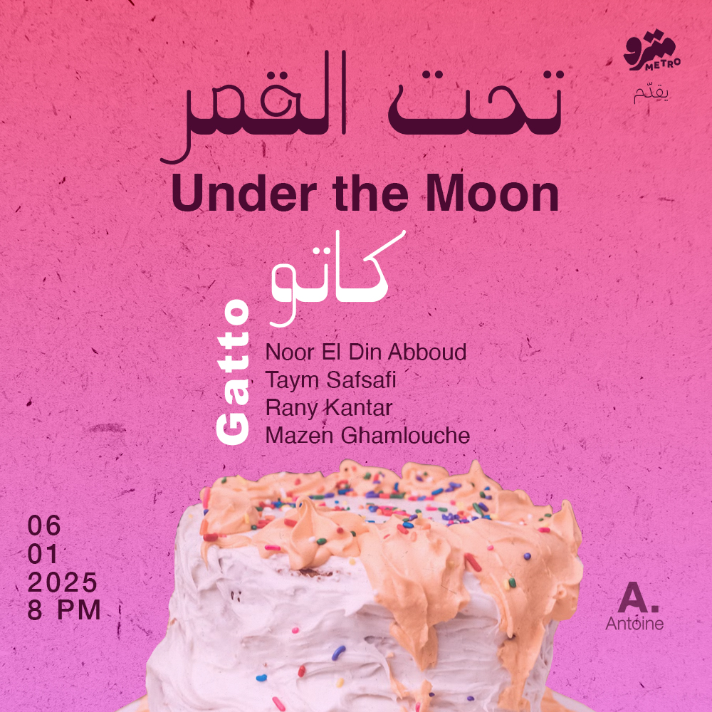 For English scroll down تحت القمر مع كاتو نور الدين عبود: غناء وكيبورد تيم صفصافي: ساكسوفون، ناي، مجوز ومزمار راني القنطار: إيقاع مازن غملوشي: إيقاع الإثنين ٦ كانون الثاني ٢٠٢٥ تفتح الأبواب الساعة ٧ مساءً تبدأ الحفلة الساعة ٨ مساءً البطاقة: ١٥$ بطاقات دعم: ٣٠$ و ٥٠$ البطاقات متوفرة في مترو، جميع فروع مكتبة […]